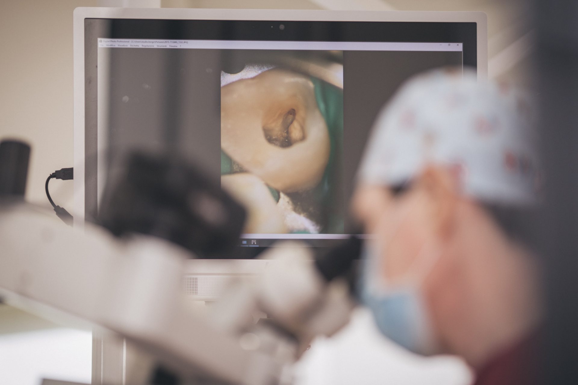 Il microscopio operatorio è un apparecchio costoso ma fondamentale per svolgere la professione odontoiatrica con precisione: ingrandisce fino a trentasei volte. Un giusto ingrandimento, infatti, cambia completamente la prospettiva di lavoro. Nella valutazione di situazioni complesse è impossibile prescindere da questo strumento, se si vogliono fare le cose alla Bergo.